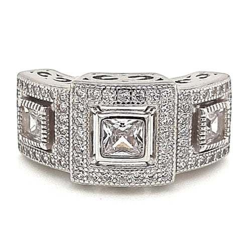 Anillo riel con figuras geométricas en engastes, con 7 Diamantes de 1,5pts y peso de 2,1grs